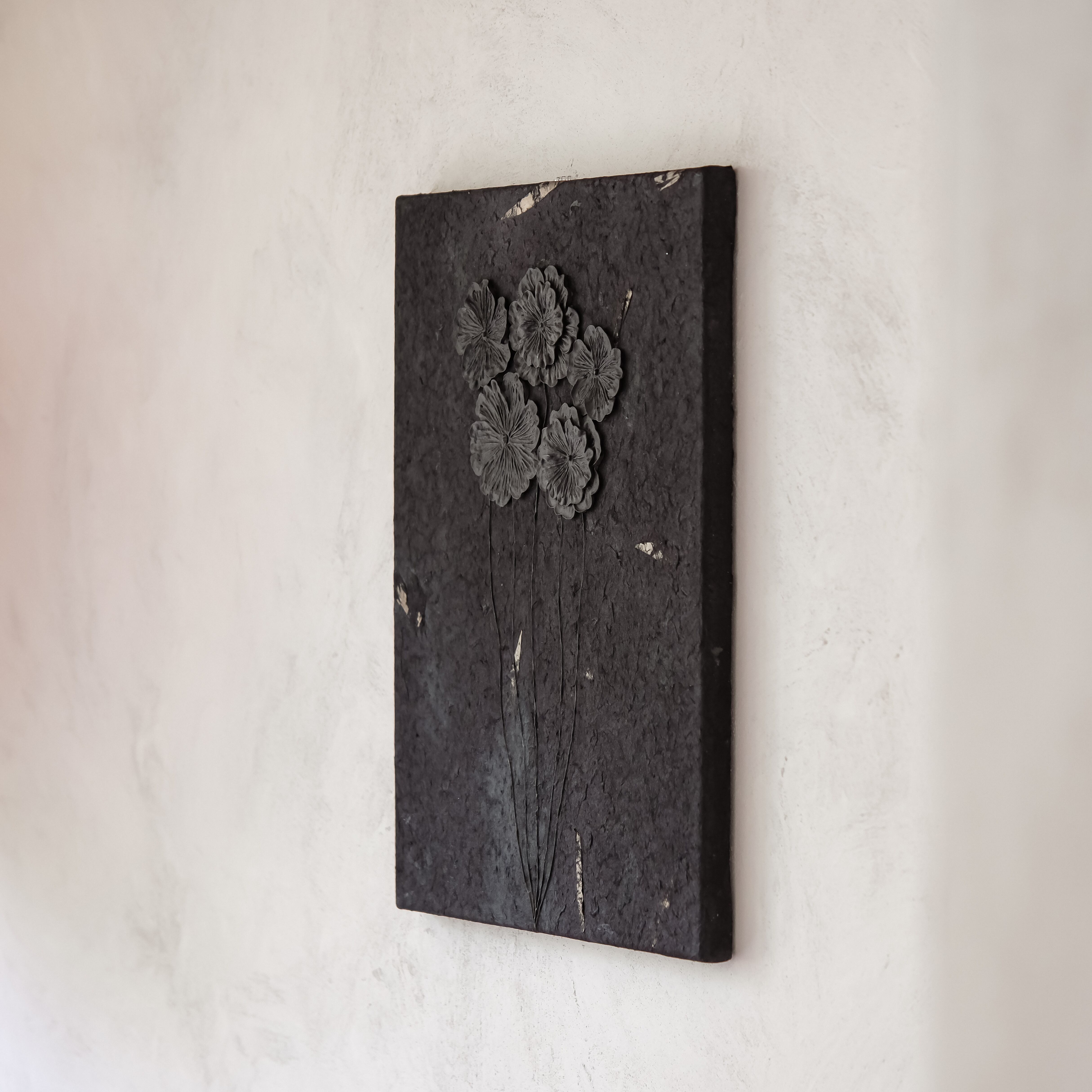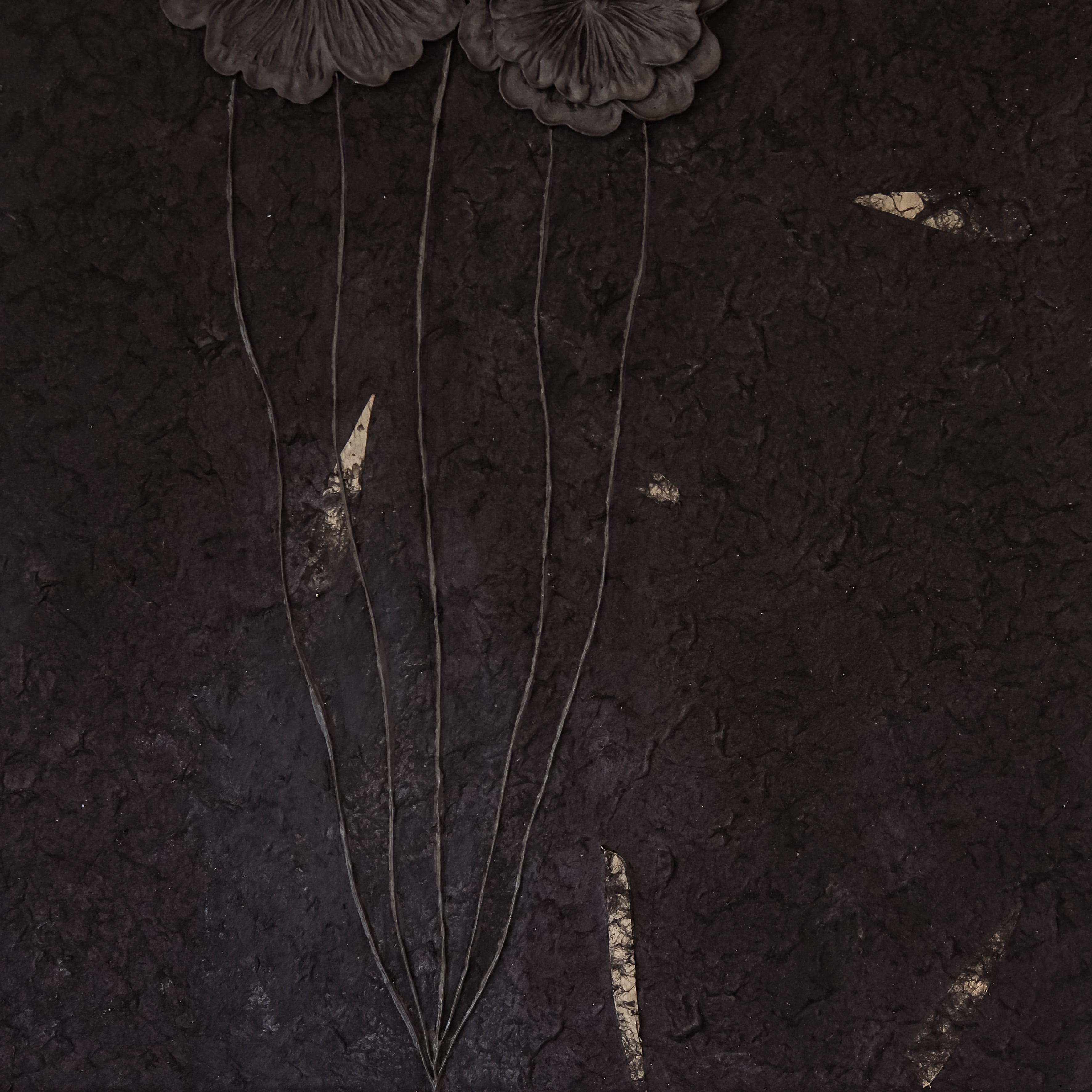 花びらにはわずかなダークグレーの揺らぎを含ませ、茎や背景にも微妙な濃淡を施しました。