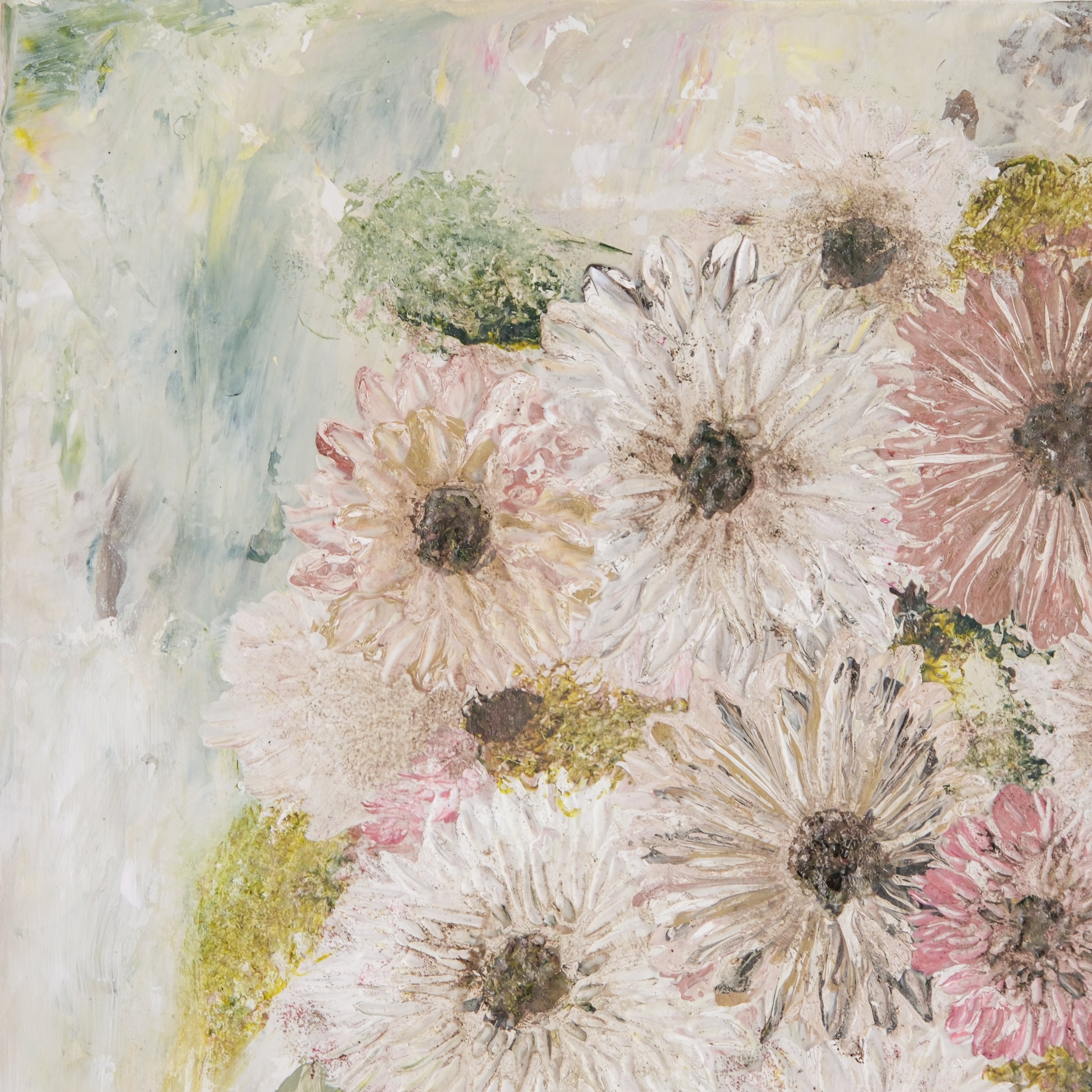 優しいトーンの重なりが、花々の生命力を静かに際立たせてくれます。
