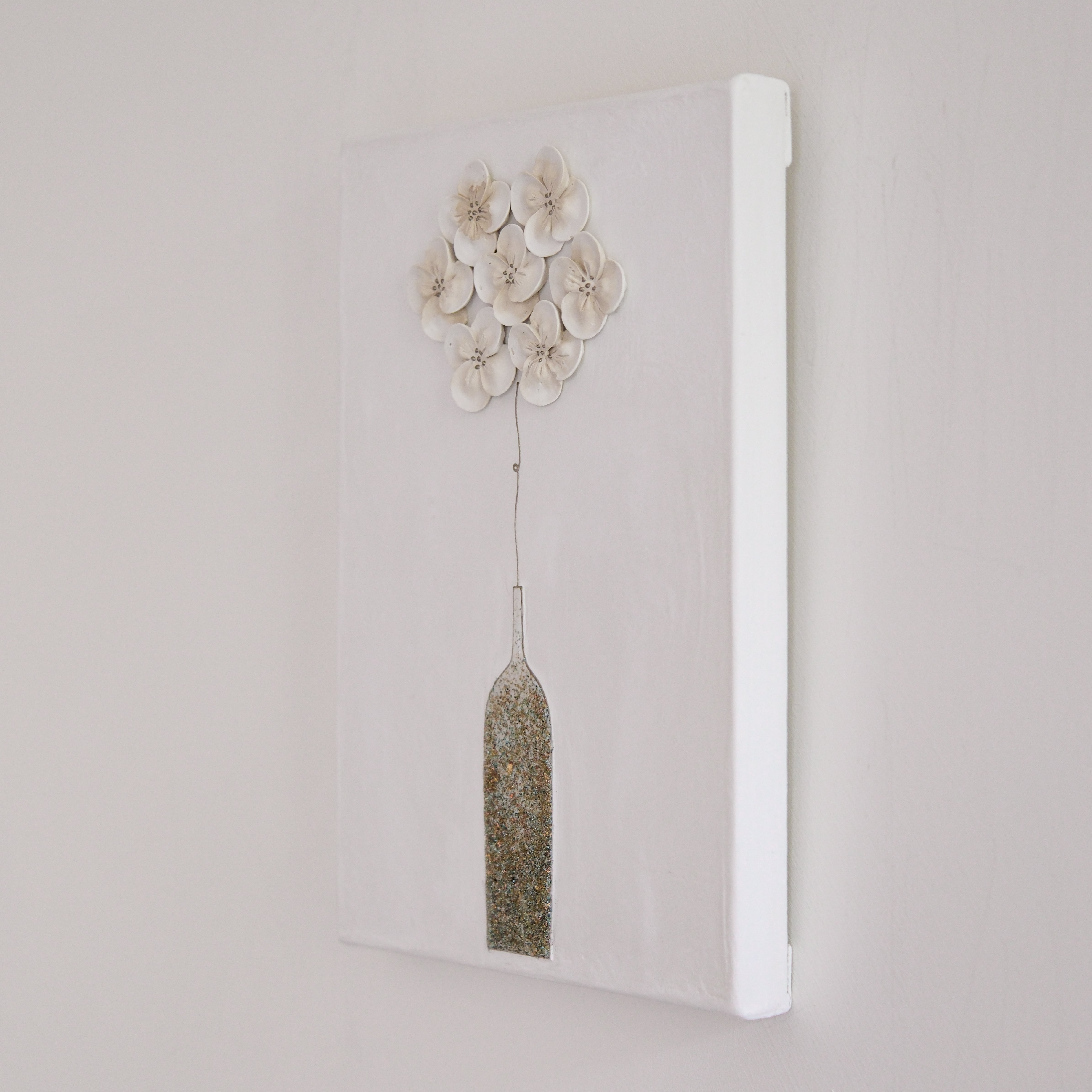 光の角度によって変わる繊細な輝きが、作品に奥行きと深い余韻を添えています。
