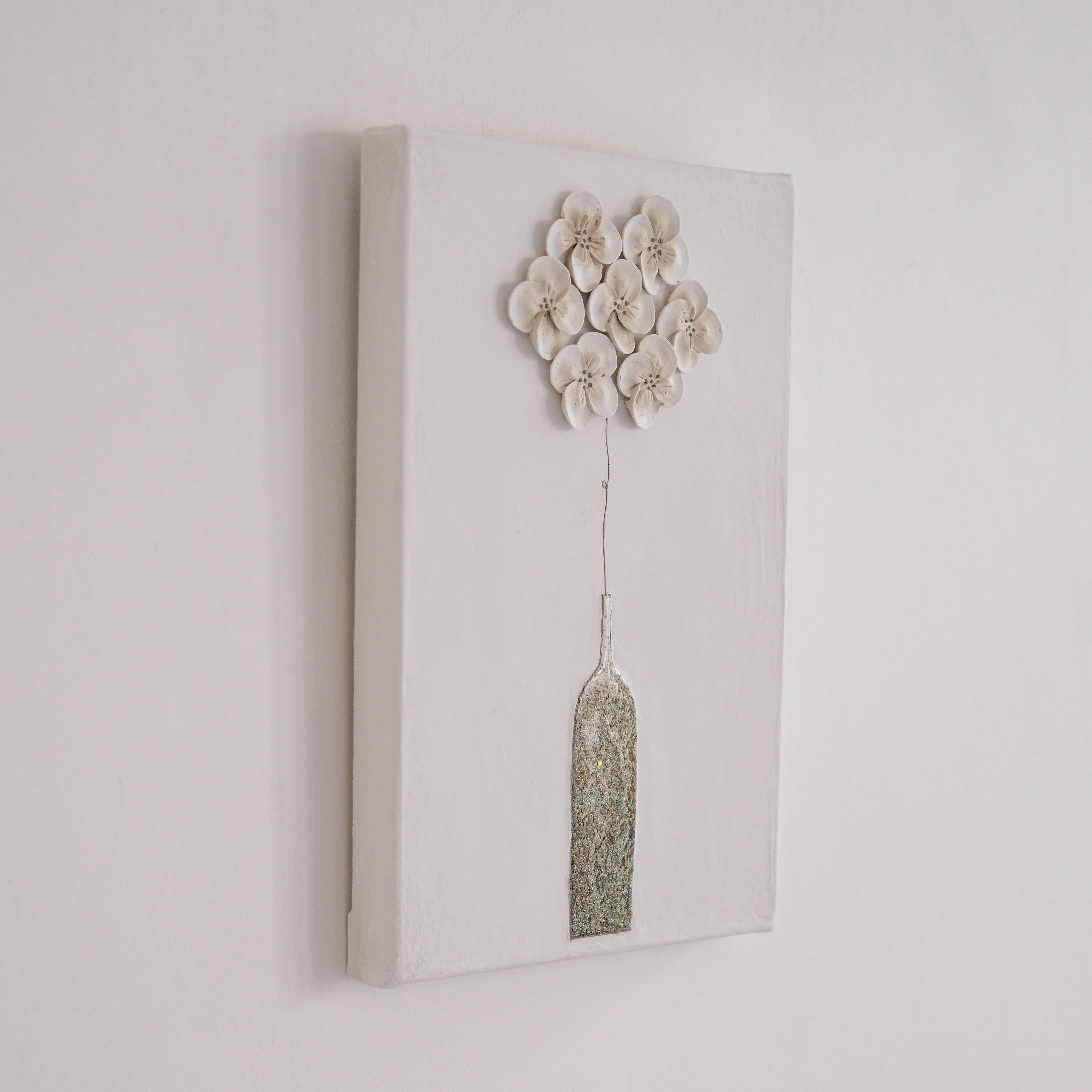 光の角度によって変わる繊細な輝きが、作品に奥行きと深い余韻を添えています。