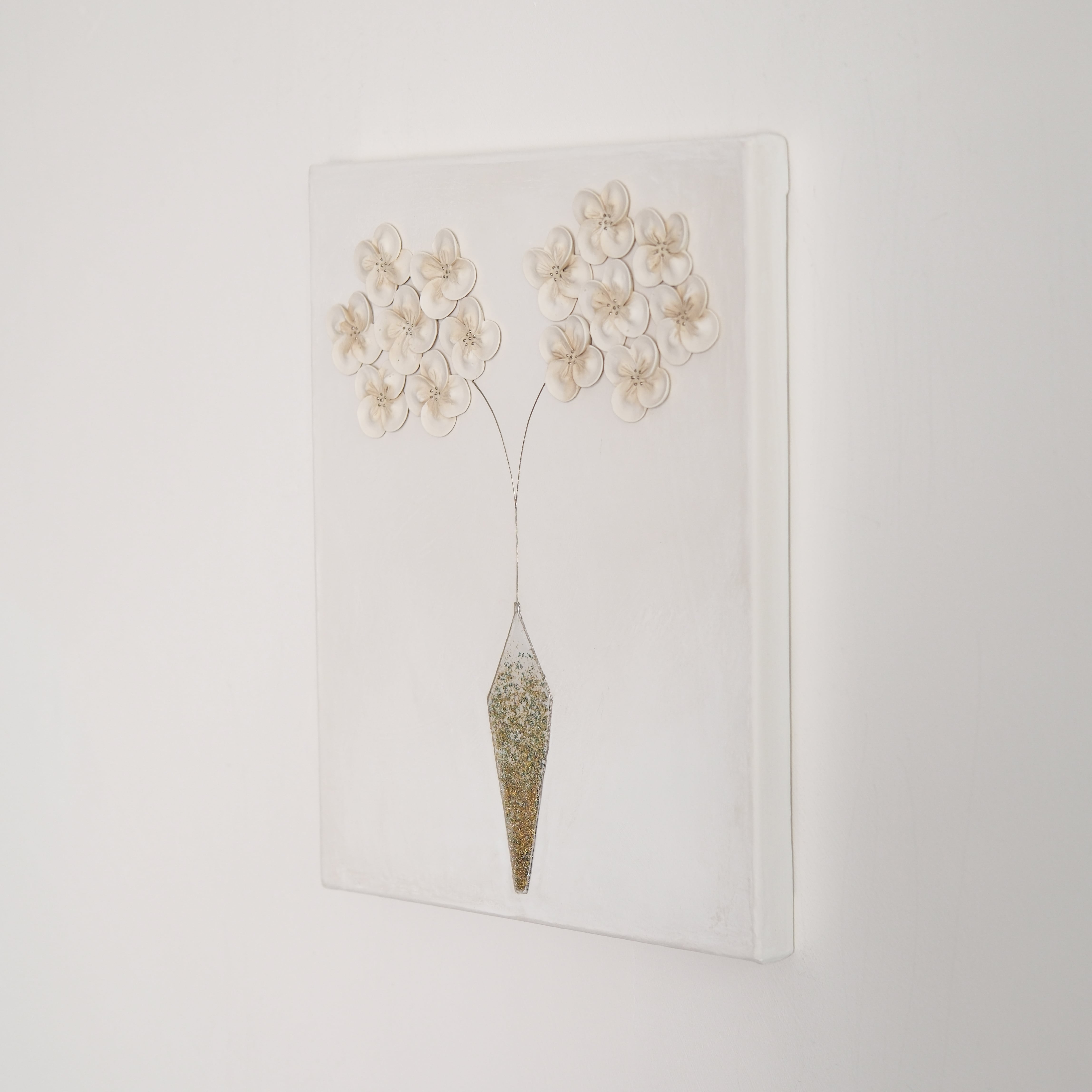 この作品には日本の伝統技法である砂子を用い、繊細な輝きを添えました。