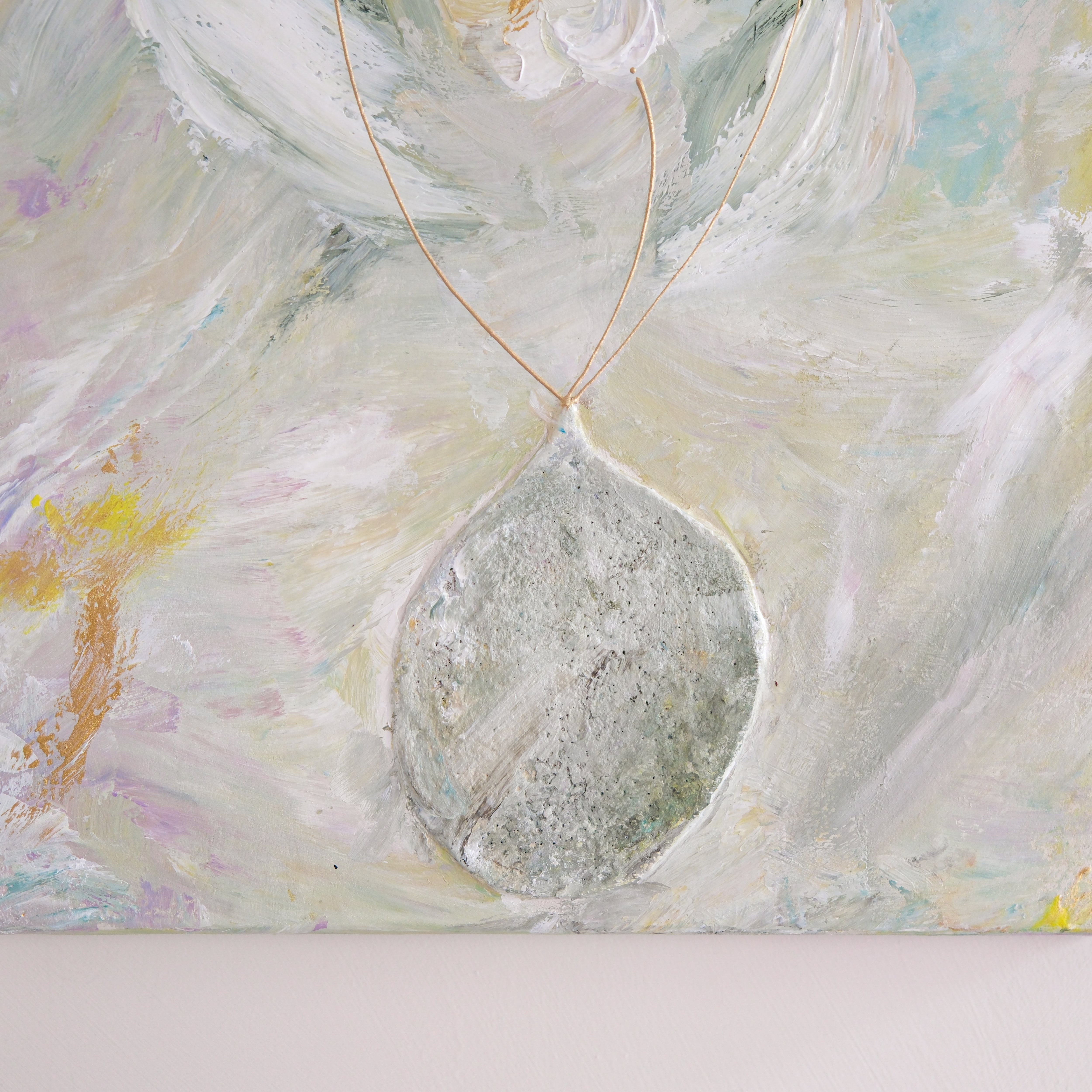 和色を何層にも重ね、春の風をテーマに作品を描きました。