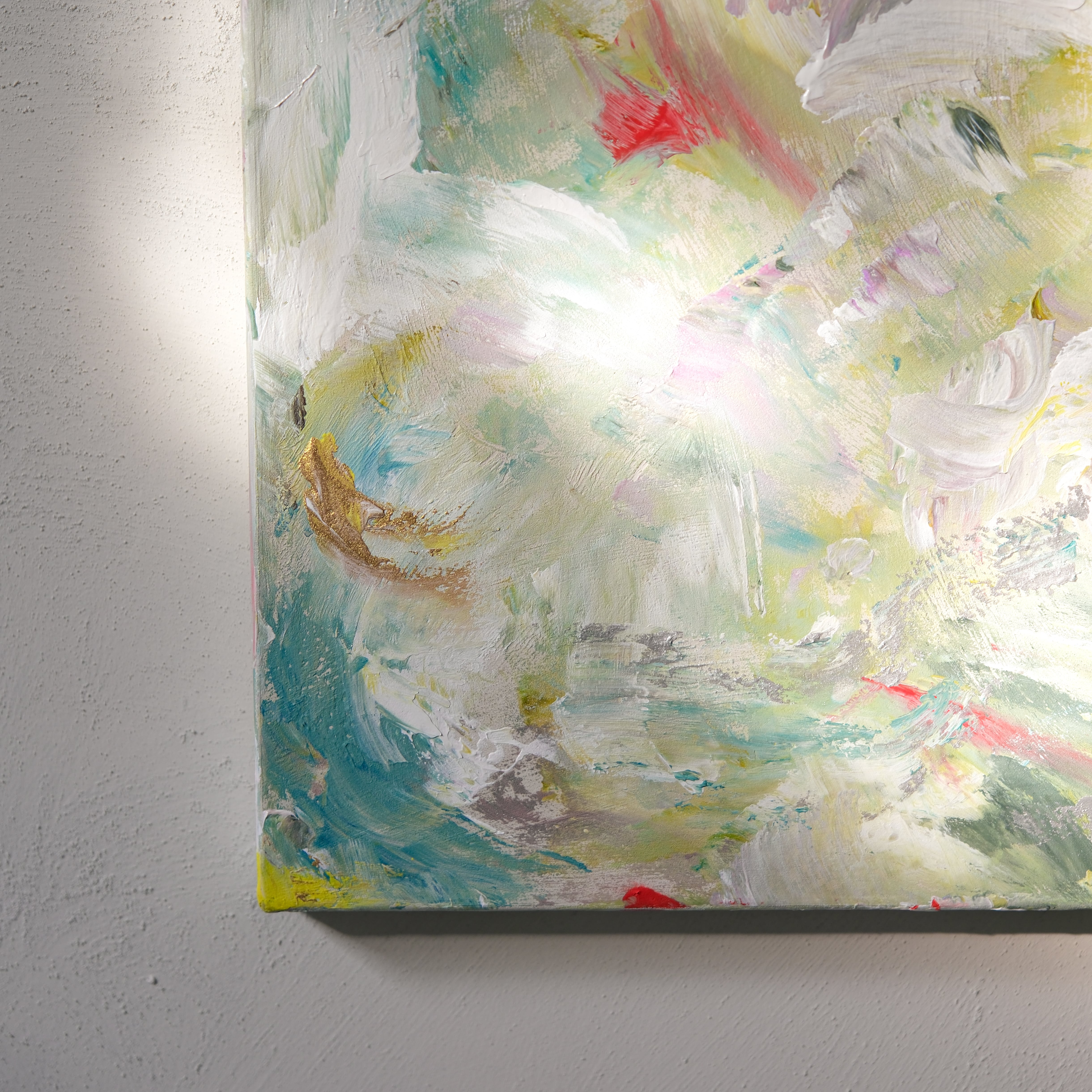 和色を何層にも重ね、春の風をテーマに作品を描きました。
