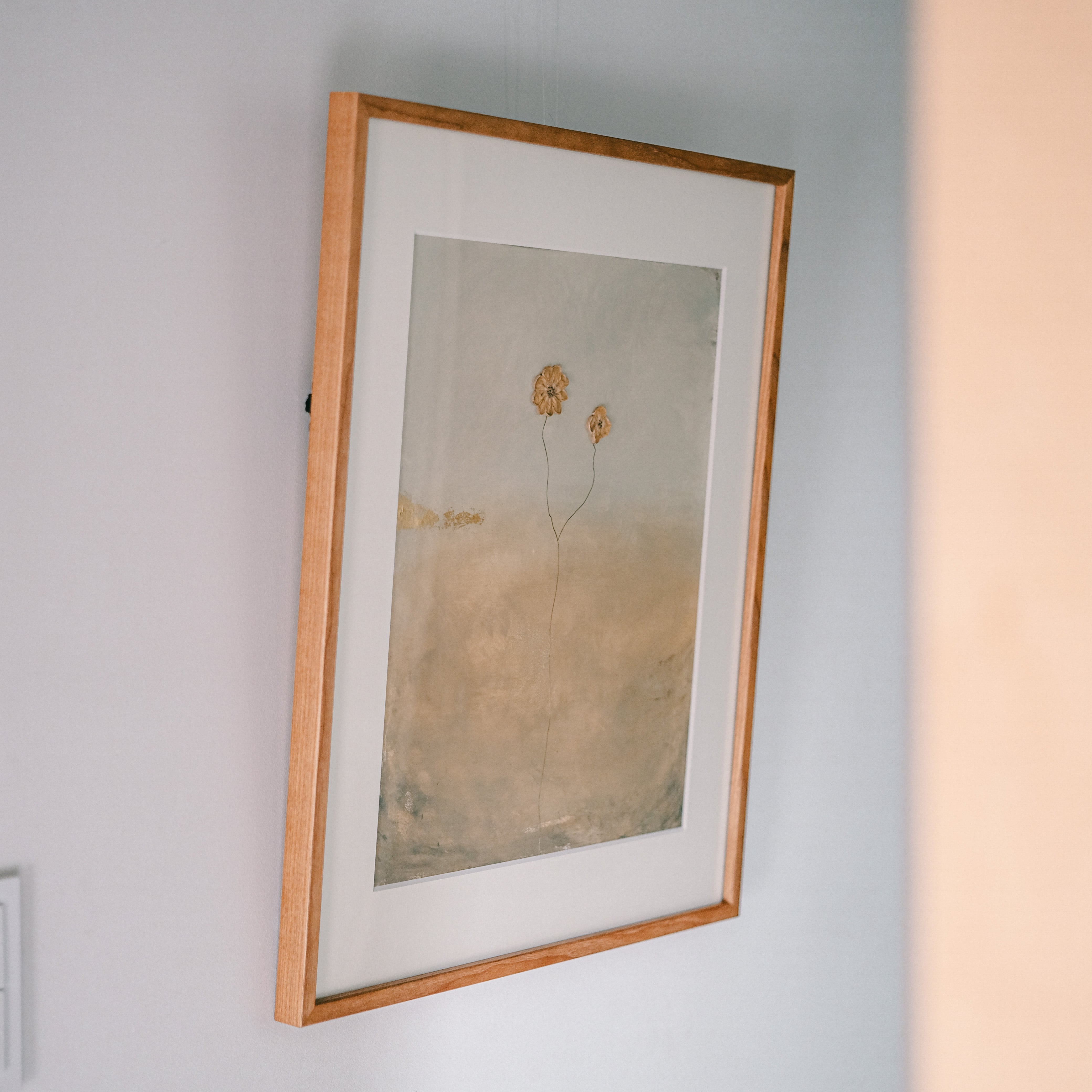 ・フレームつき作品に関しましては、少しアンティーク感が出るよう凹凸や色むらをおつけしています。ウレタン塗装を施してありますが、強く擦る・壁や物にぶつける・長期間摩擦の起こりやすい場所へ飾るなど様々な要因で色移りする可能性がございますのでご注意くださいませ。