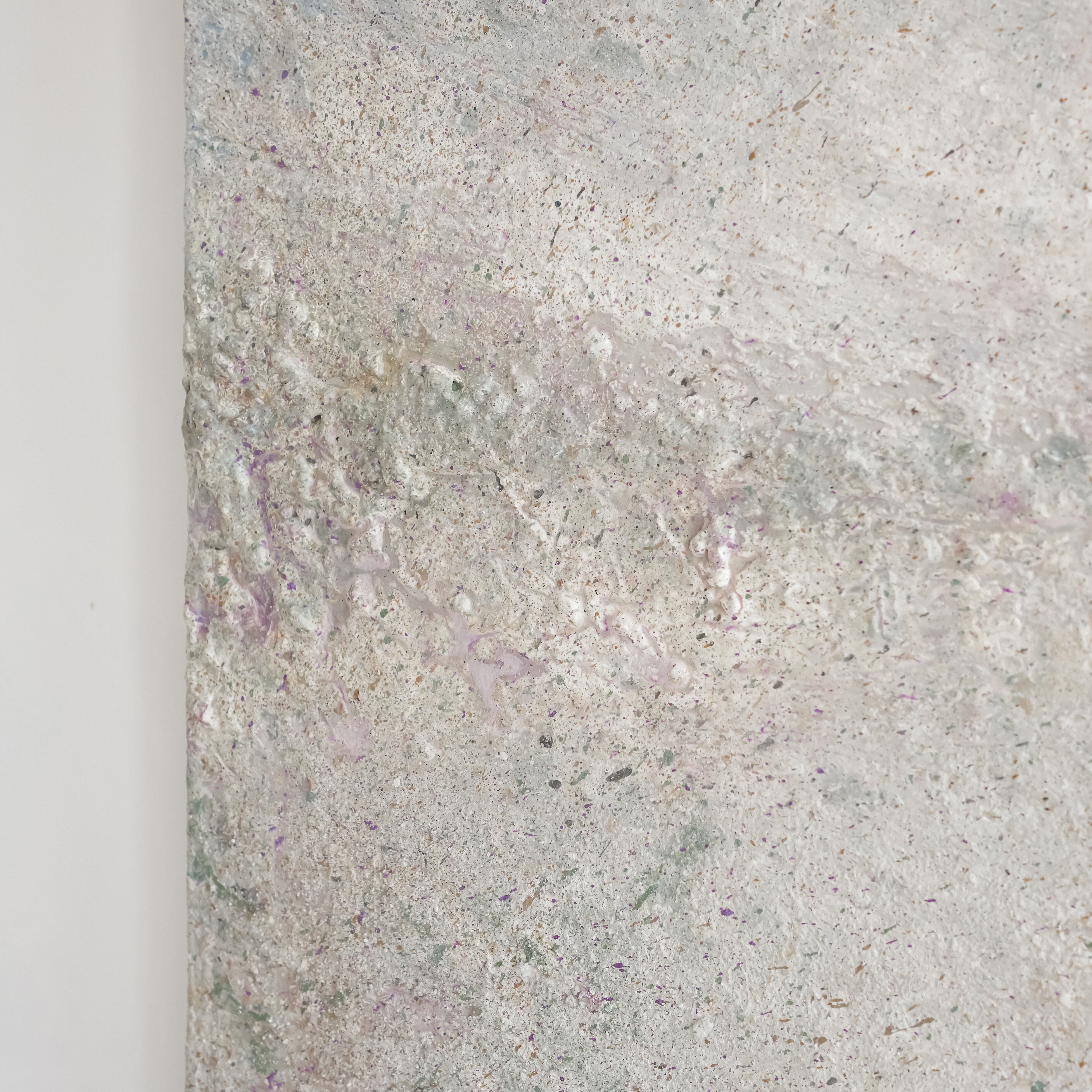 通常なら廃棄されてしまうような茶葉やコーヒーかすを作品に組み込むことで、作品に独特の質感と奥行きを与え、侘び寂びの概念を用いて時の経過とともに現れる静かで奥深い美を表現しています。